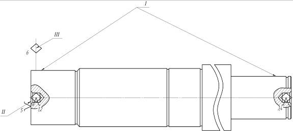 момент передаётся на зубчатое колесо 1 через шлицевое соединение, затем через шпоночное