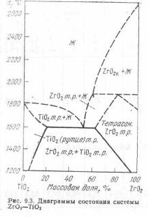 ZrO2 — TiO2 (рис. 9.3) образуется одно соединение ZrO2-TiO2