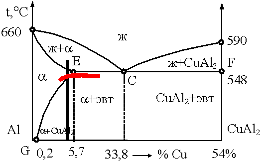 1. Начертить часть диаграммы Al-Cu, указать на ней сплав Д1 (Аl + 3,8... 4,8% Сu +