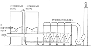 транспорт к рукавным фильтрам, а вторым - при фильтрации газа сквозь слой