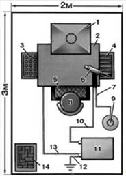 зворотній провід; 14- ящик для відходів.