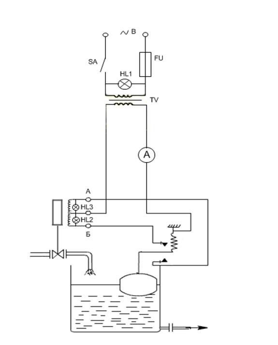 принципиальной схемы стенда для исследования свойств позиционного регулятора