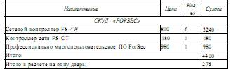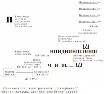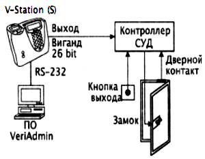 оборудования системы с одним пунктом прохода через дверь в варианте с