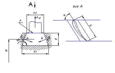 где h1,h2,d,b – геометрические размеры замка лопатки (см. рис. 4.1).