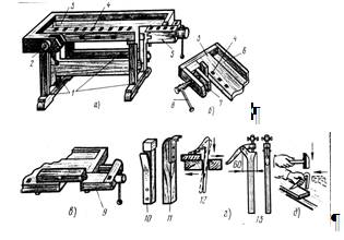 элементов. Передние тиски имеют зажимной винт и подкладочную доску 7. Задние тиски