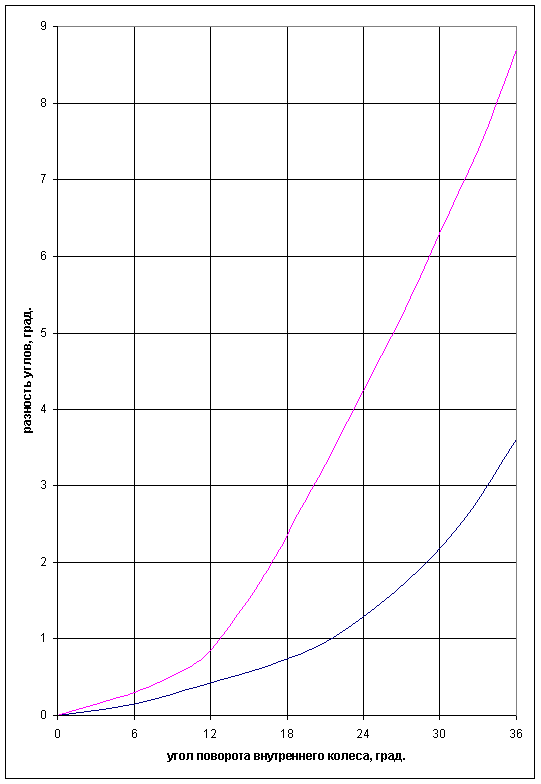 углам установки оси шкворня и величине плеча обкатки. В нашем случае это: