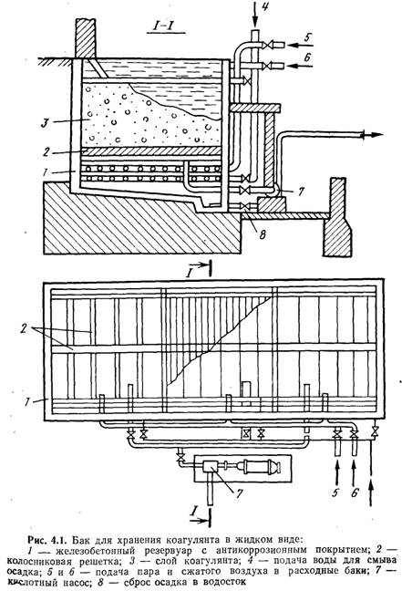 в жидком виде. С этой целью на водоочистном заводе предусматривают резервуары