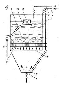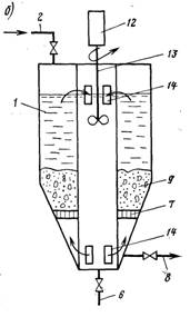 и коагулированной воды; 9 - компенсационная ячейка; 10 - сливная воронка;