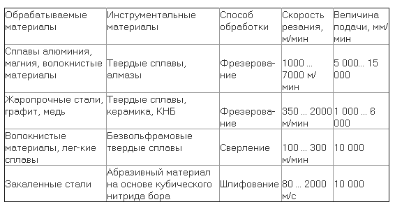 высокую подачу с высокими оборотами, специфическими инструментами и
