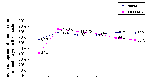 конфліктної поведінки, але тільки у агресивних дівчат. У взаємовідношеннях