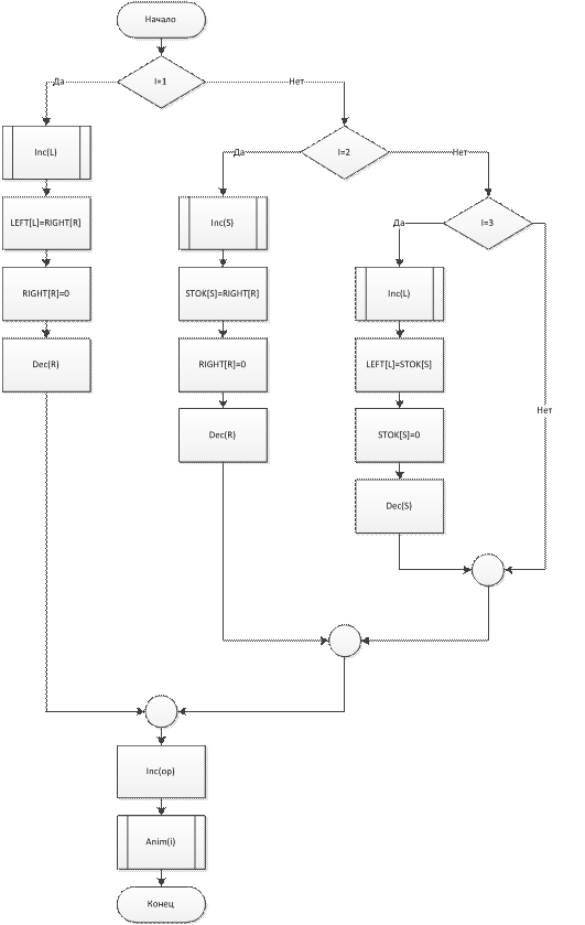 головна чатина алгоритму поки стек та початок не спорожніють.