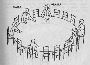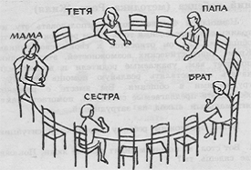 необходимо предложить ребенку нарисовать свою семью, сидящую за круглым столом,