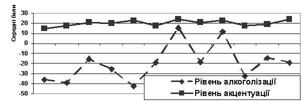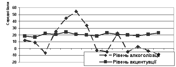 Взаємозв’язок пияцтва, як форми девіантної поведінки у підлітків, з акцентуаціями характеру