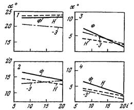 исходного углового отклонения самолета от посадочной прямой. Оценивались