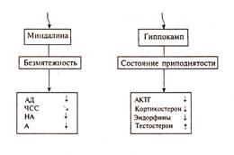 активации системы: миндалина — симпатическая нервная система — мозговое