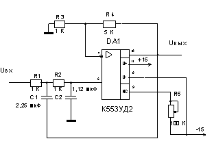 активного ФНЧ представлена на рисунке 4. резистор R5 служит для установки 0.