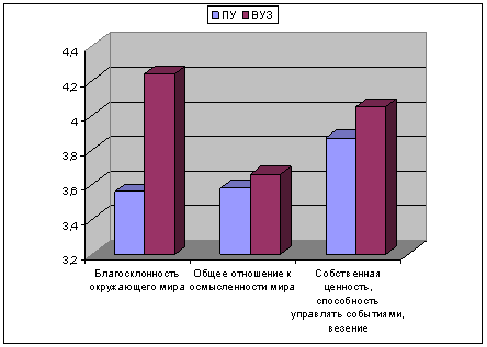 базовых убеждений личности студентов ВУЗа и профтехучилища.