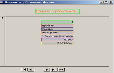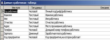 таблица "Данные о работниках", созданная с помощью конструктора.