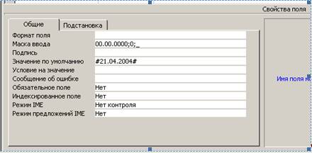 свойства полей как значения по умолчанию, маски ввода, поля подстановок, размер