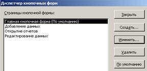 всего, в окне Диспетчер кнопочных форм выберите страницу, которую необходимо