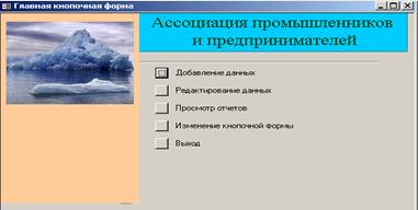 окно страницу Main Switchboard (главная кнопочная форма по умолчанию). Чтобы перед