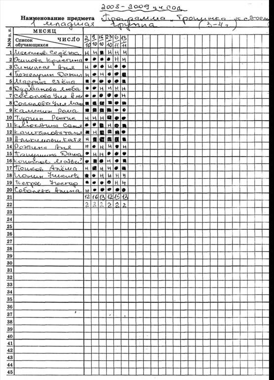 подгруппам. Проведено 24 занятия в каждой подгруппе.