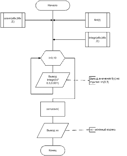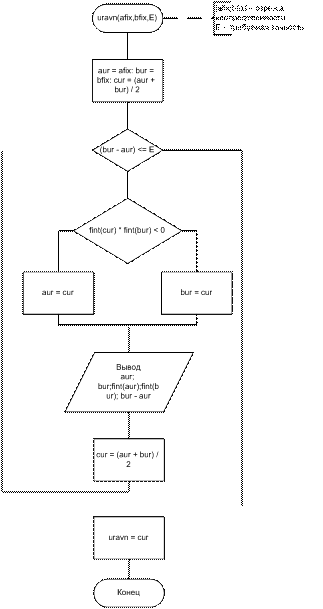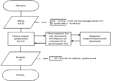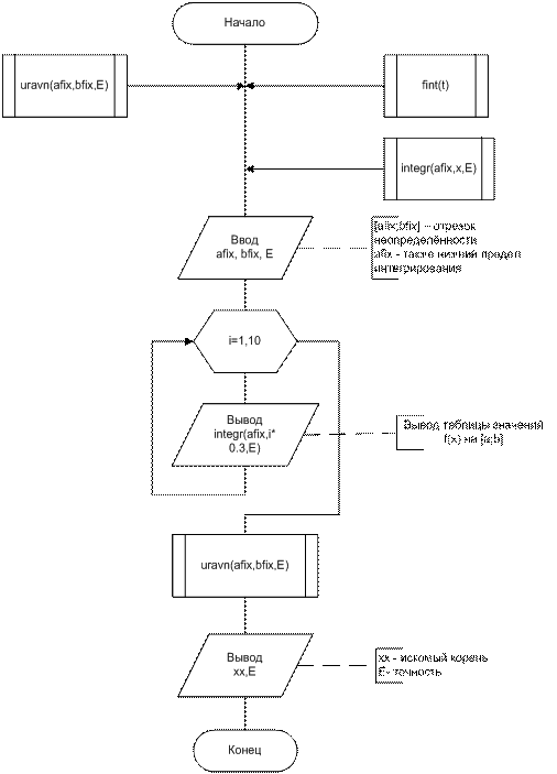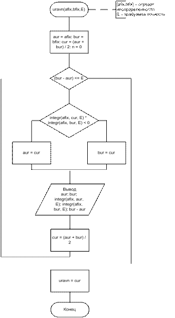 уравнения по методу половинного деления, который использует f(x), полученные от модуля численного интегрирования