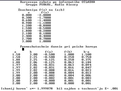 Искомый корень x*=1.926407 был рассчитан с точностью E=0.0001