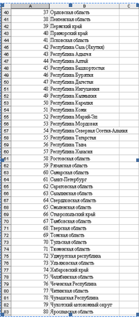ВПР: в ячейку G2 введем формулу =ВПР(B2;СправочникРегионов;2;1);