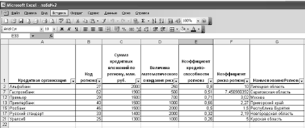 автофильтра, в поле Сумма кредитных вложений по региону, выберем условие отбора