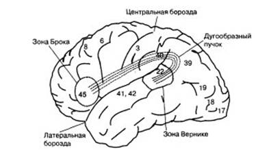 дугоообразному пучку передаются в зону Брока (поле 45). Функцией зоны Брока