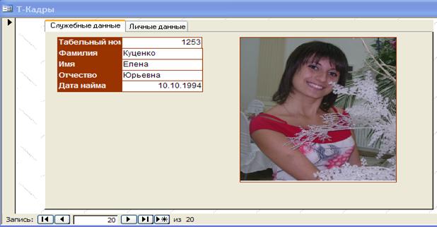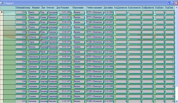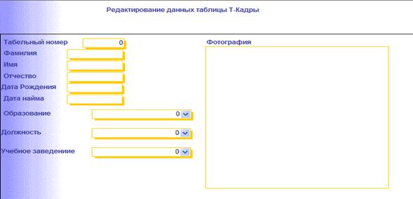 Данные о кадрах позволяет открыть форму и внести изменения в таблицу Т-Кадры.