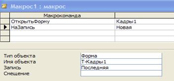 макрос для открытия формы и перехода на запись для ввода новых данных (Рис.25,