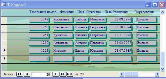 FOX PRO, ACCESS. В данной работе мы рассмотрим только MICROSOFT ACCESS. кадры база данные
