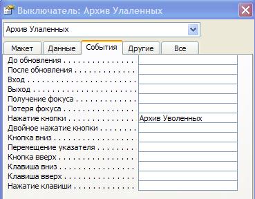 контекстном меню кнопки предлагается выбор способа обработки выбранного события