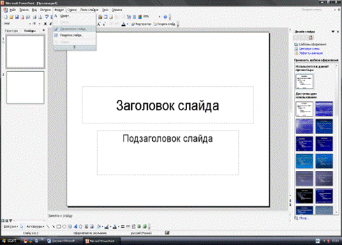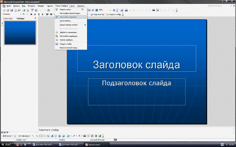 необходимо применить последующие команды – «Формат»- «Оформление слайда». Также