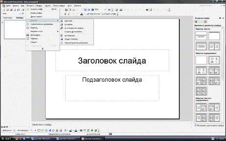слайда» и выбрать макет содержимого.