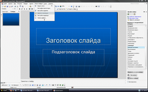 «Показ слайдов» - «Эффекты анимации»