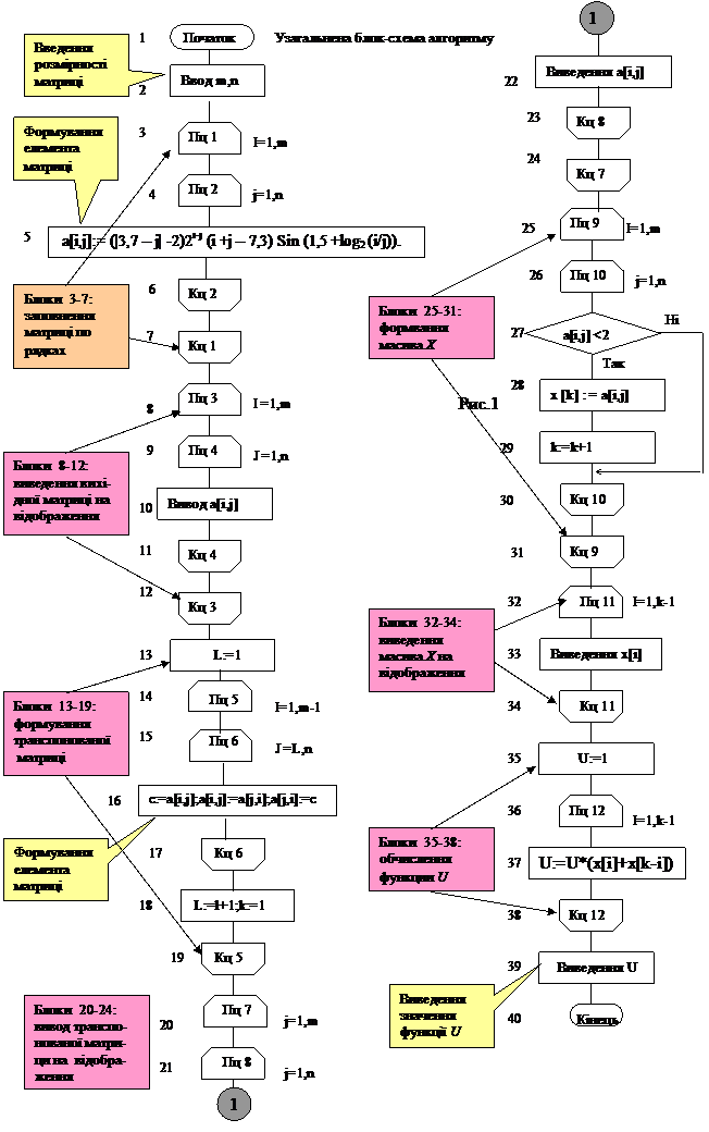 матриці) на узагальненій блок-схемі алгоритму (довільна форма представлення