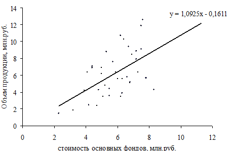 зависимости объема продукции от стоимости основных фондов вывели линейное