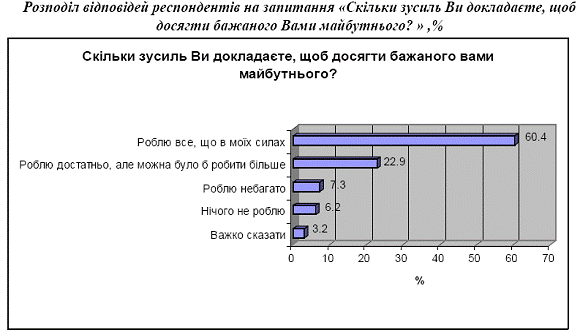 що робить усе, що може, для досягнення бажаного майбутнього. І ще частина (22.9%)