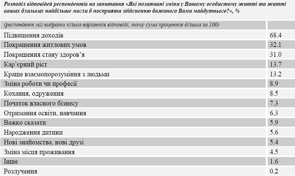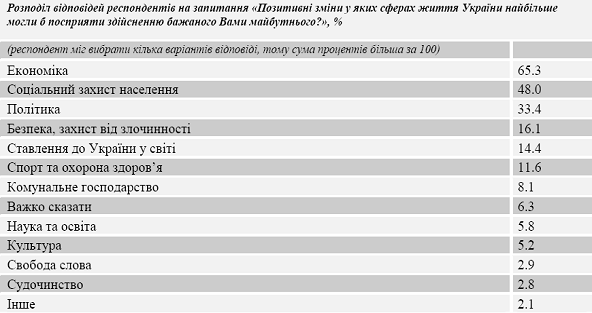посприяли б здійсненню бажаного майбутнього, найчастіше населенням України