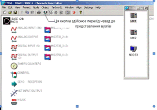 зображення вузлів у робочому вікні редактора бази каналів.