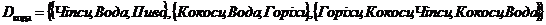 згадано вище, з чотирьох транзакцій дві містять і «Кокоси» і «Воду».