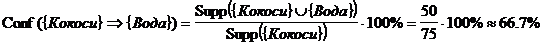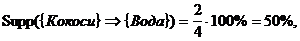 транзакцій містять і «Кокоси», і «Воду»), а достовірність цього правила рівна