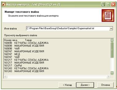роздільниками. Для прикладу, можна вибрати один із готових прикладів у папці «Samples» – Supermarket.txt: