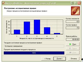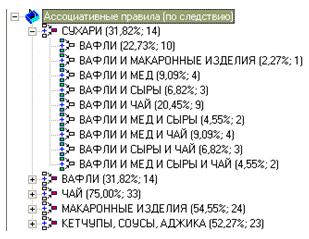 асоціативних правил з вказанням їх підтримки, достовірності та кількості.