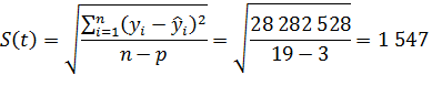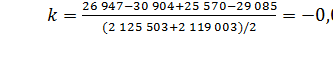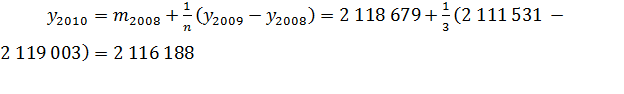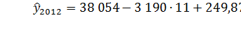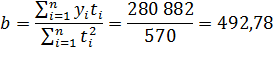 параметров линейного тренда для абсолютного показателя числа выбывших в