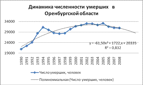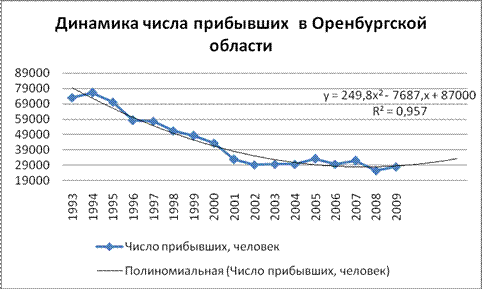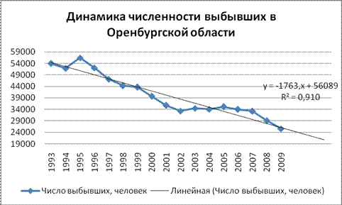 6. Динамика числа выбывших в Оренбургской области с линейной линией тренда.