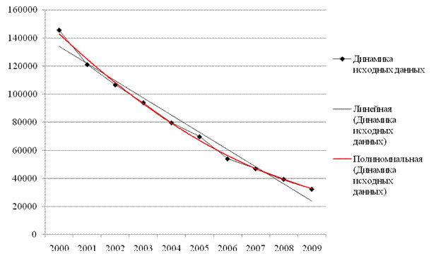 3. с помощью статистического изучения и моделирования динамики изучить интенсивность развития эмиграционного процесса, выявить его основную тенденцию и сделать прогноз на 2011 год.